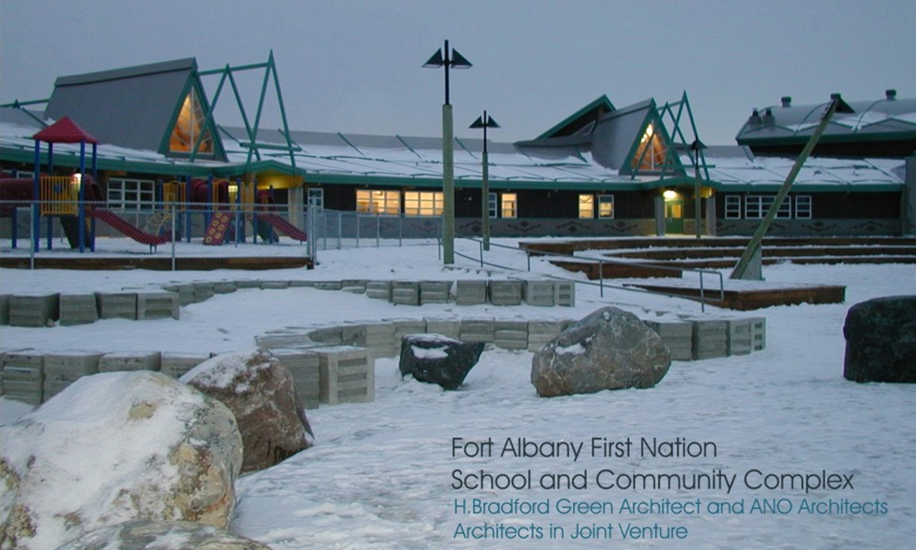 The firms of H. Bradford Green Architect Inc. and ANO Architects Inc. with UMA Resource Engineering combined to meet the needs of the Fort Albany First Nation in the design and tender of an Education and Community Complex.