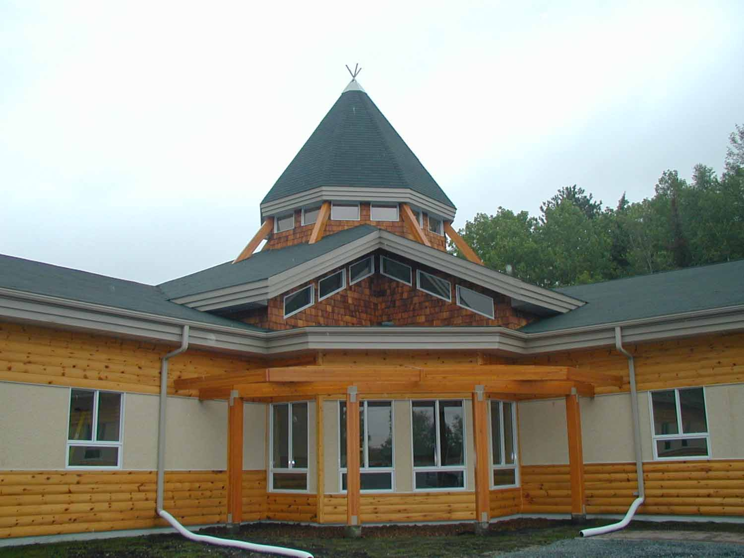 The environmentally friendly and sustainable design is accentuated by the 10 kw photo voltaic roof mounted grid-tie solar array. The system feeds the generated power back to the hydro grid and the 20-year agreement with the hydro supplier will supplement the First Nation's income.