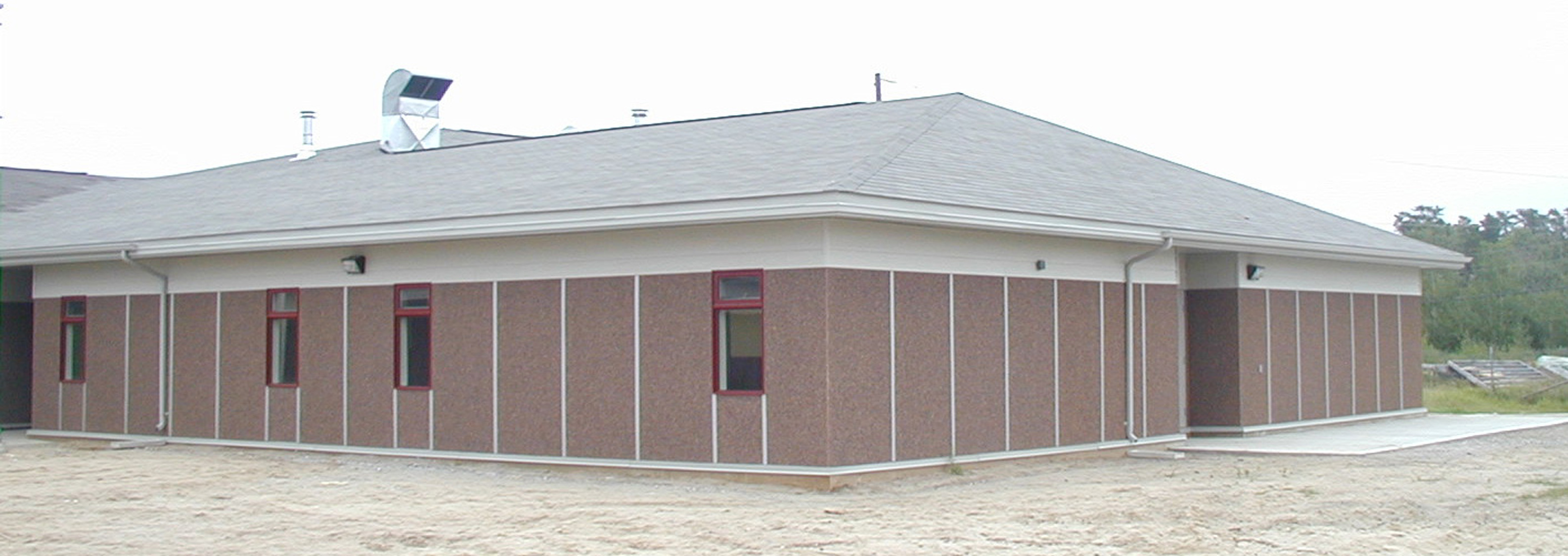 After a successful fall tender, a credit was obtained from the successful bidder for winter construction costs and construction postponed to the spring of 2004. This provided the Contractor with the winter to shop assemble the exterior walls in ready-to-erect panels and organize delivery of materials to ensure a timely construction schedule in the spring. During construction it was determined that the existing septic field was below the water table (At the First Nation's instruction, the original school had been connected to an existing spetic tank and tile bed to control costs). The First Nation then instructed HBG to provide a design and isssue a change to replace the entire existing septic field with new single raised field. Further inspection also revealed that the existing septic tank had failed and would have to be replaced. Even with these setbacks the facility was ready for occupancy in time for the 2004 school year.