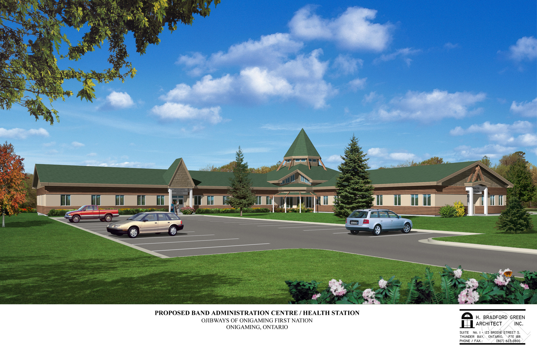 H. Bradford Green Inc. together with the Ojibway of Onigaming First Nation Chief, Council and Project Co-ordinator, Health Canada Representatives and the Matawa Project Management Group have teamed up to create a Multi-Purpose Facility on the Ojibway of Onigaming First Nation. This unique Multi-Purpose Facility will house two community functions, a Health Canada Station and the First Nation administration offices. The intent of the facility is to have the Health Station and administrative offices in close proximity to each other for functional and convenience purposes.